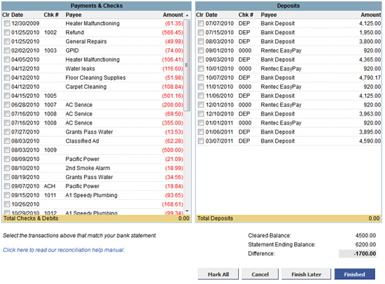 Reconciling your bank accounts can forever more be hassle-free thanks to a new feature we’re rolling out this week. Assisted account reconciliation is now available for all Rentec users managing their bank accounts through Rentec property management software. If you’ve ever used products like Quicken or Quickbooks, you’ll feel right at home with the new reconciliation features. Just have your bank statement handy, enter the account ledger you want to reconcile and click the new Reconcile button at the top.