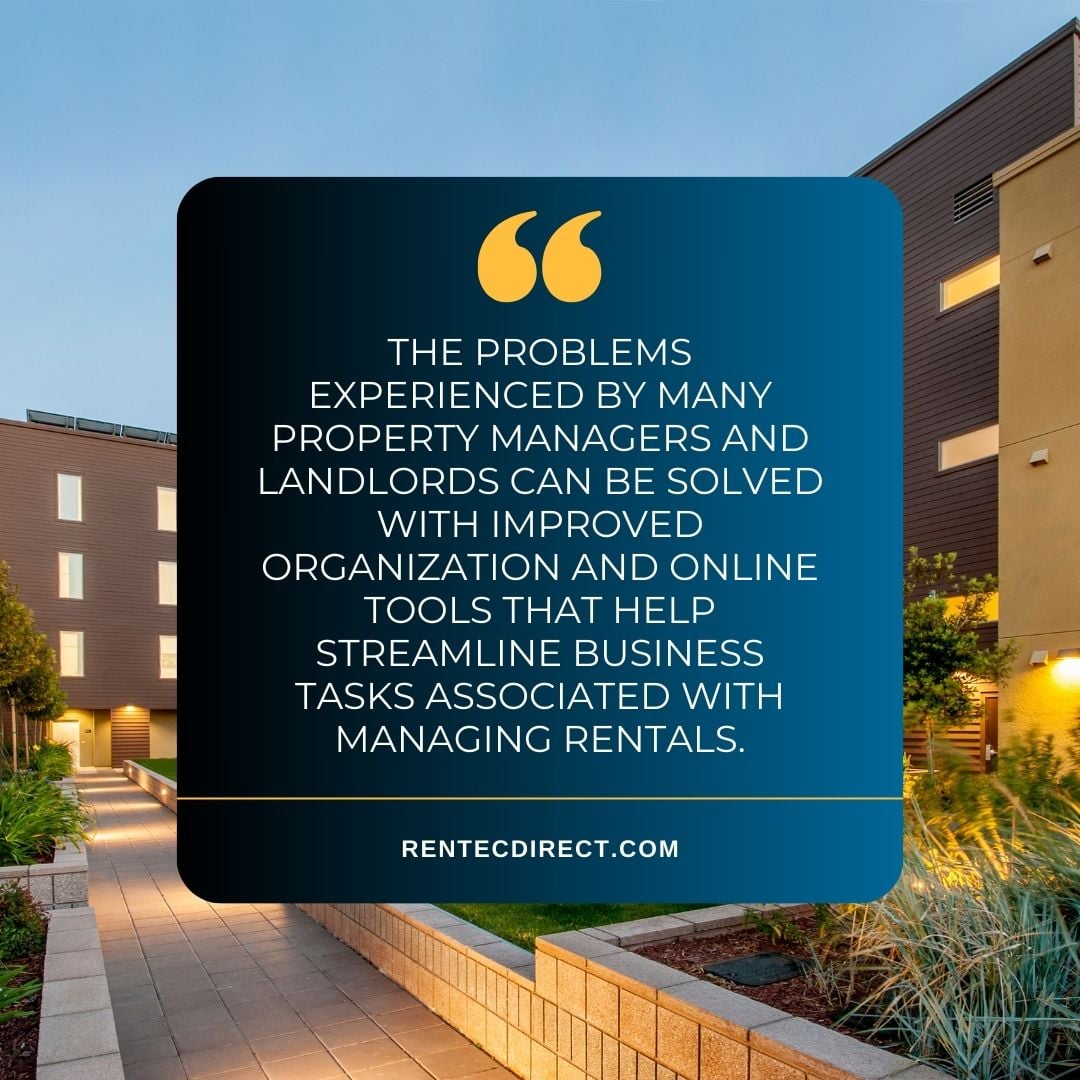 Owning or managing a rental property can be a dream come true, or a job full of headaches and heartbreak. Often, the difference between a positive experience and a negative one is a lack of knowledge about the resources that will make property management easier. The problems experienced by many property managers and landlords can be solved with improved organization and online tools that help streamline business tasks associated with managing rentals.