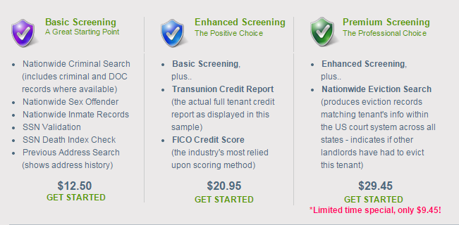 I’ve included below what is included in each of the screening packages and the corresponding price. Rentec is currently offering a huge discount on the premium tenant screening package. With all of the reports provided and $20 off the pricing is much lower then any competing companies. The product offered is better or equivalent to any of the competition.