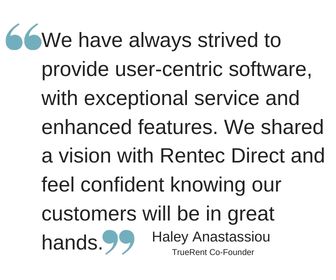 “We have always strived to provide user-centric software, with exceptional service and enhanced features. We shared a vision with Rentec Direct and feel confident knowing our customers will be in great hands,” says Haley Anastassiou, co-founder of TrueRent.