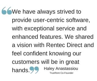 “We have always strived to provide user-centric software, with exceptional service and enhanced features. We shared a vision with Rentec Direct and feel confident knowing our customers will be in great hands,” says Haley Anastassiou, co-founder of TrueRent.