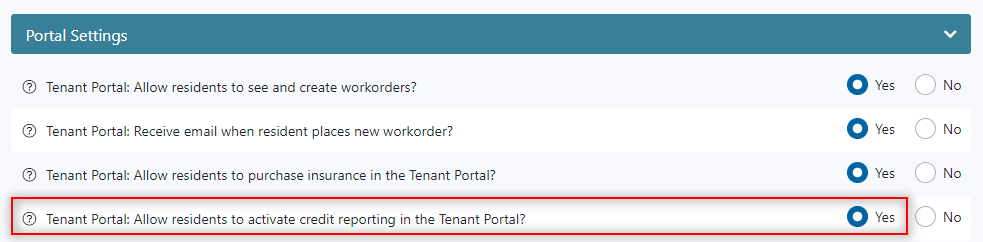 3. Under Portal Settings find the ‘Tenant Portal: Allow tenants to report rent in the Tenant Portal‘ option and select YES.activate rentreporters
