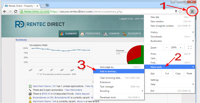 These instructions are for using Rentec Direct with the Chrome web browser.