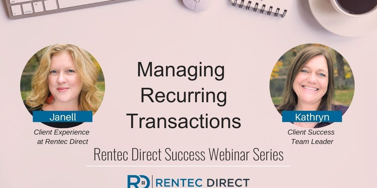 We recently hosted a webinar for Rentec Direct clients all about the who, what, when, where, and why of recurring transactions within your Rentec Direct account. The webinar included valuable information from your Director of Client Experience, Janell Kittleson, and Kathryn your Rentec Direct Client Success Team Lead. Learn how to avoid common mistakes, which recurring transactions are system-generated, what recurring transactions actually allow you to do.